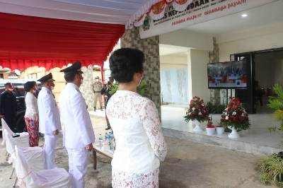 METROklik – Walikota Tomohon Caroll J A Senduk SH dan Wakil Walikota Wenny Lumentut SE (CSWL) bersama Forkopimda Kota Tomohon, Selasa (17/8/2021) mengikuti prosesi upacara peringatan detik-detik Proklamasi Kemerdekaan Republik Indonesia ke-76 secara virtual di depan kantor Dispora Kota Tomohon, yang dipimpin langsung oleh Presiden Republik Indonesia Joko Widodo (Jokowi) yang menjadi Inspektur Upacara.