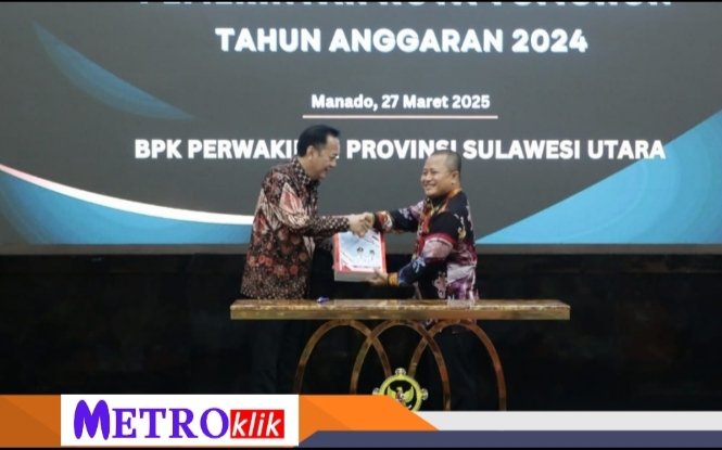 METROklik – Walikota Tomohon Caroll Senduk SH dan Wakil Walikota Sendy Rumajar SE MIKom, menghadiri kegiatan Penyampaian Laporan Keuangan Pemerintah Daerah (LKPD) Unaudited Tahun Anggaran 2024, di BPK Perwakilan Provinsi Sulawesi Utara, Kamis (27/03/2025).