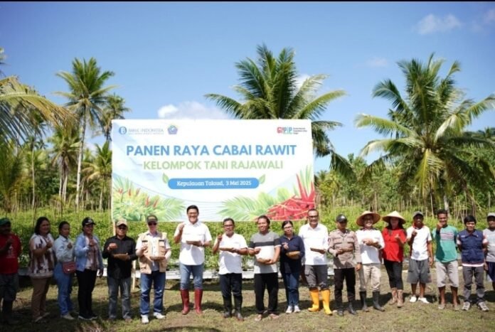 panen komoditas cabai rawit dan penyerahan program bantuan smart green house dan sumur bor kepada Kelompok Tani (Poktan) Rajawali, di Dusun I, Desa Essang Selatan, Kecamatan Essang, Kabupaten Kepulauan Talaud, Sabtu (03/05/2025).