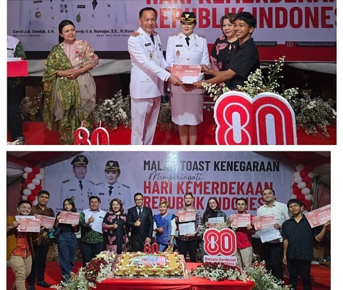 Penyerahan hadiah untuk para pemenang dilakukan oleh Walikota Caroll Senduk SH dan Wakil Walikota Sendy Rumajar SE MIKom, di Stadion Babe Palar Tomohon, sebagai rangkaian acara toast kenegaraan pada Minggu (17/8/2025).