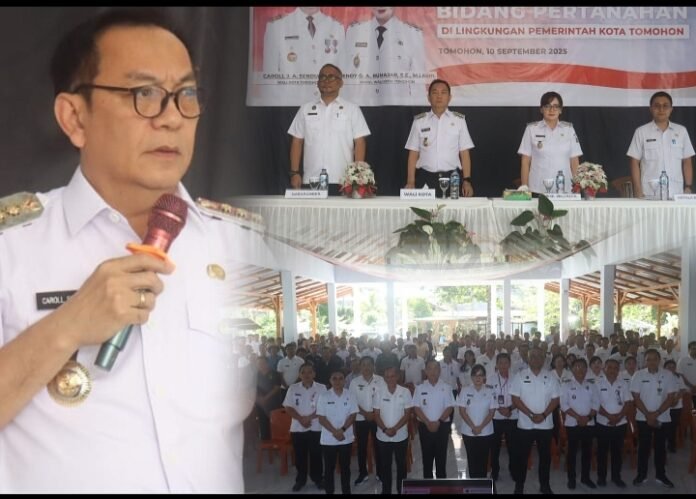 METROklik – Wali Kota Tomohon Caroll Senduk SH dan Wakil Wali Kota Tomohon Sendy Rumajar SE MIKom, menghadiri kegiatan Penyuluhan Hukum Bidang Pertanahan Pemerintah Kota Tomohon, bertempat di Lumimpasot Cafe n Hall Tomohon, Rabu (10/09/2025).