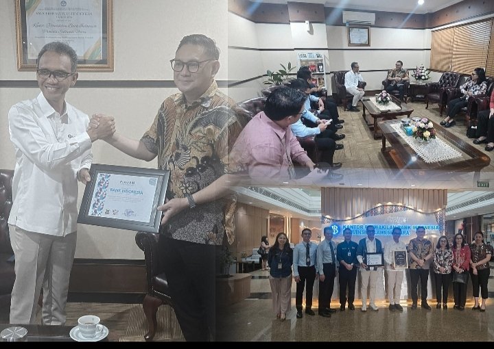 Penghargaan diterima langsung kepala BI Perwakilan Sulawesi Utara Joko Supratikto didampingi Deputi Renold Asri bertempat di gedung BI Perwakilan Sulawesi Utara, Kamis (11/09/2025)