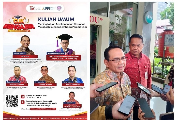 METROklik – Otoritas Jasa Keuangan (OJK) melaksanakan kuliah umum kepada mahasiswa Fakultas Ekonomi dan Bisnis (FEB) Universitas Sam Ratulangi (Unsrat) Manado, Jumat (10/10/2025).