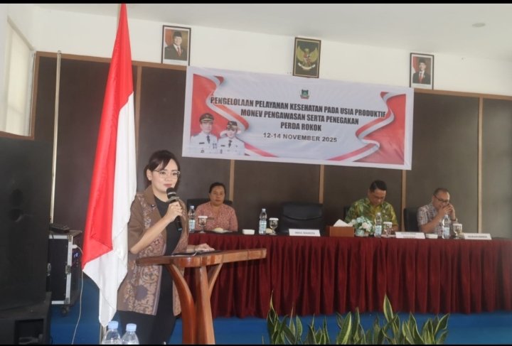 METROklik – Wakil Walikota (Wawali) Tomohon, Sendy Rumajar SE MIKom, menghadiri sekaligus menutup kegiatan Monitoring dan Evaluasi Pengawasan dan Penegakkan Kebijakan Peraturan Daerah, tentang Kawasan Tanpa Rokok serta Pengendalian Tembakau di Kota Tomohon, yang dilaksanakan di Grand Master Resort, Jumat (14/11/ 2025).