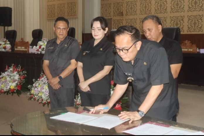 Rapat Paripurna dalam rangka Penandatanganan Nota Kesepakatan Kebijakan Umum Anggaran (KUA) APBD dan Prioritas Plafon Anggaran Sementara (PPAS) Kota Tomohon Tahun Anggaran 2026 dipimpin oleh Ketua Ferdinand Mono Turang, S.Sos. didampingi Wakil Ketua Donald Pondaag dan Jefry Polii, S.I.K.