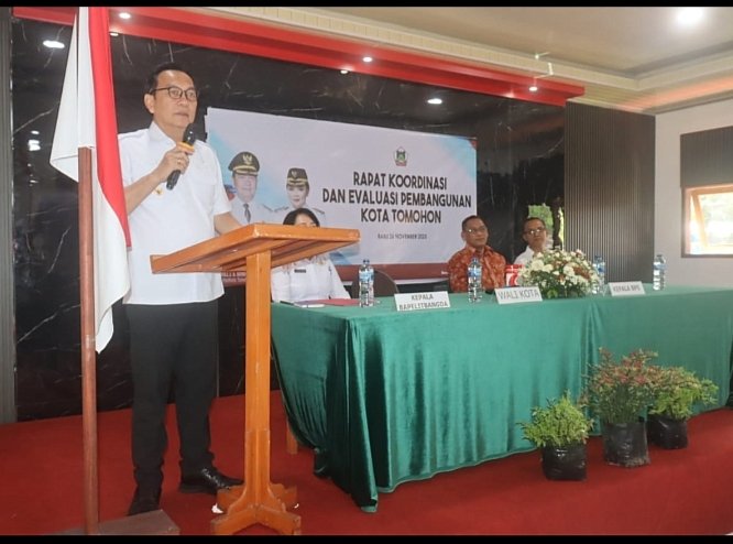 Walikota mengatakan dalam sambutannya, kegiatan ini merupakan forum strategis untuk mengevaluasi pembangunan di Kota Tomohon sampai dengan triwulan III tahun 2025 sebagai bagian dari pelaksanaan RKPD tahun 2025, pencapaian indikator kinerja utama dan pemenuhan SPM. Serta juga penguatan sinergitas antara pemerintah Kota Tomohon, Pemerintah Provinsi Sulut dan Pemerintah Pusat.