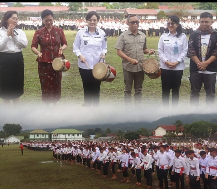 METROklik – Wakil Walikota Tomohon Sendy Rumayar, SE, M. I. Kom, didampingi Ketua TP- PKK Kota Tomohon, drg. Jeand ‘ arc Senduk-Karundeng, menghadiri sekaligus membuka kegiatan Pembukaan dan Pementasan Mahzani Massal Dengan Tema ” HARMONI KEBERAGAMAN”, bertempat di lapangan Stadion Babe Palar Tomohon, Rabu (11/03/2026).