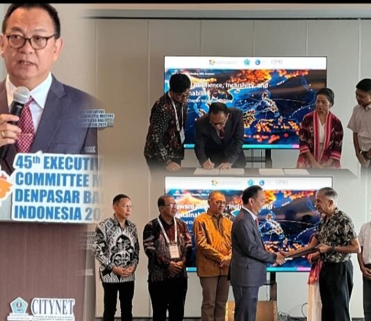 METROklik - Wali Kota Tomohon Caroll Senduk SH dan Wakil Wali Kota Sendy Rumajar SE MIKom, menghadiri acara National Chapter Indonesia Meeting dalam rangkaian Executive Committee CityNet Asia Pasific Ke-45 Tahun 2025, bertempat di Batoor Room Bali Beach Convention Center, Denpasar, Selasa (28/10/2025).