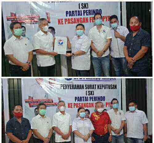 METROklik - Partai Perindo akhirnya menyerahkan Surat Keputusan (SK) B1 KWK untuk mengusung Pasangan Calon Bupati Frangki Donny Wongkar, SH (FDW) dan Calon Wakil Bupati Pdt. DR Petra Yani Rembang, MTh (PYR) di kediaman tokoh masyarakat Sinyo Koloay, yang merupakan salah satu pejuang untuk pemekaran Kabupaten Minahasa...